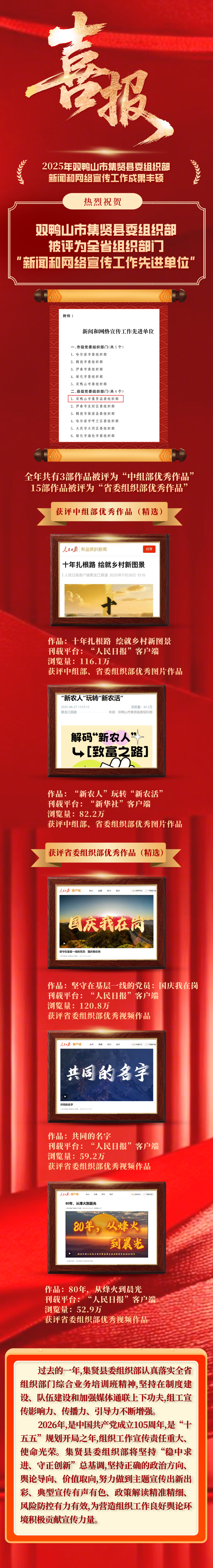喜报!双鸭山市集贤县委组织部这项工作荣获全省先进